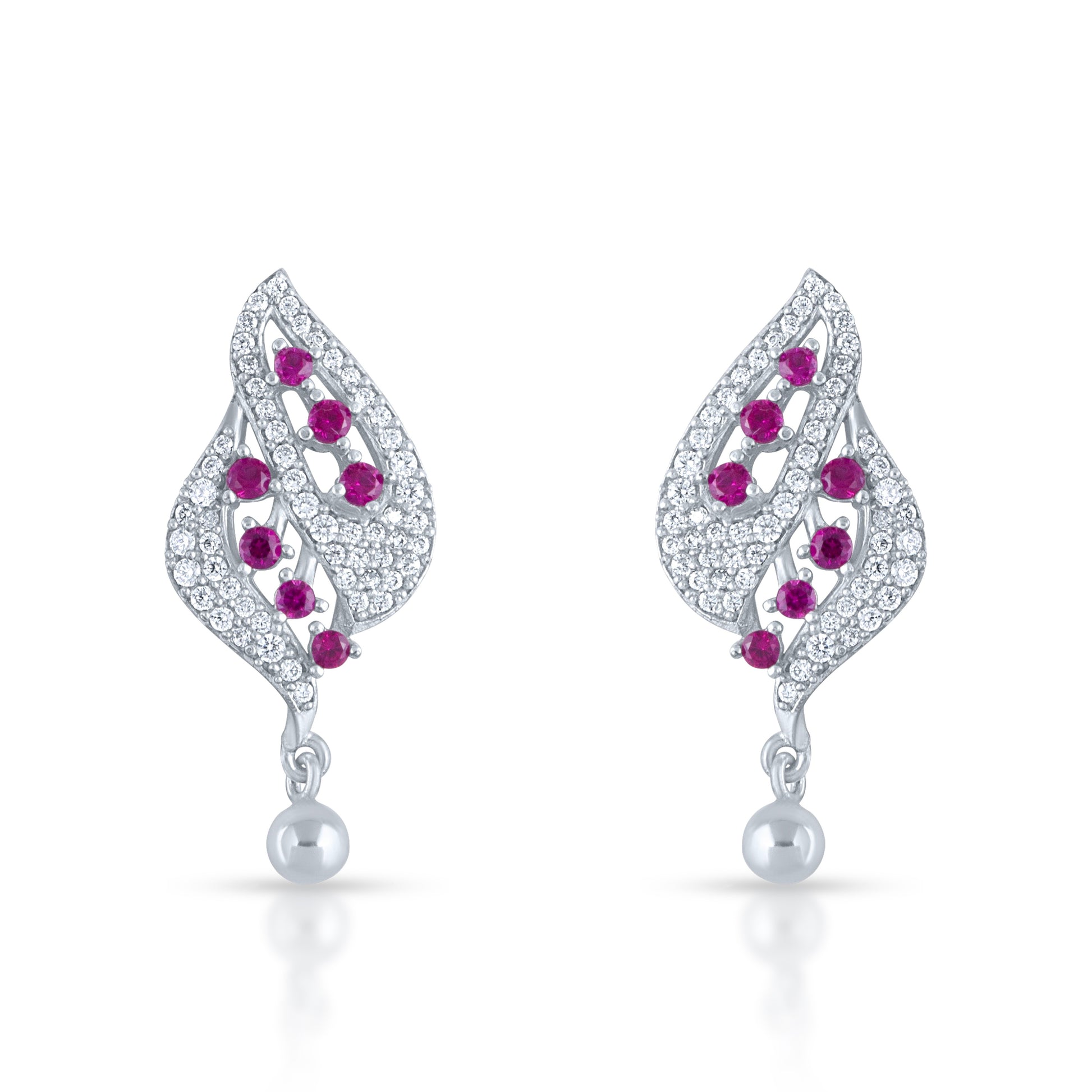 - Stones: White cubic zirconia pavé with crimson-hued gemstone accents and a single