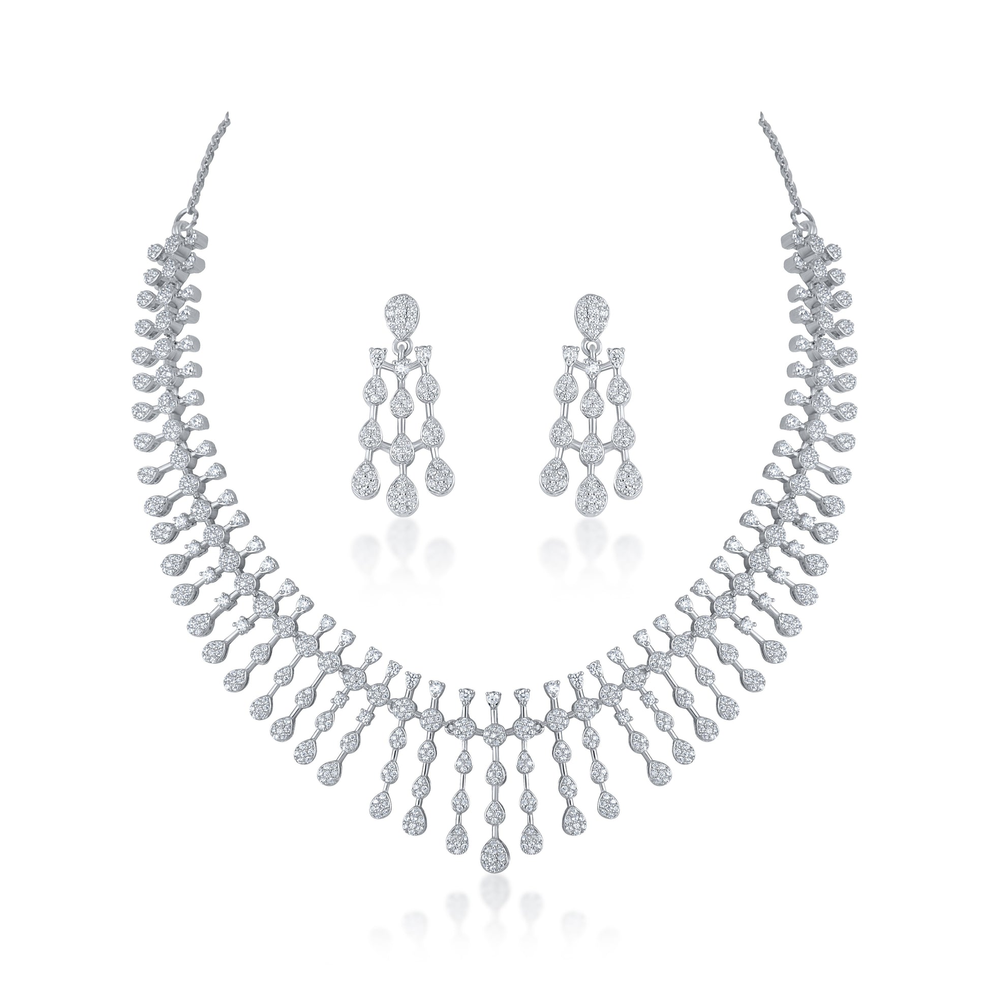 The Tarana Drip Set is inspired by the rhythmic elegance of falling raindrops, glistening under moonlight. Symbolizing renewal, grace, and timeless charm, this set beautifully mirrors the poetry of nature where every drop carries a story of elegance. Designed for those who love to embrace sophistication with a touch of drama.