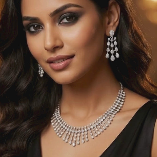 A statement necklace and earring set crafted in 925 sterling silver (hallmarked), designed with cascading drop details that move and catch the light beautifully. Elegant yet striking, this set is made to stand out without feeling heavy.